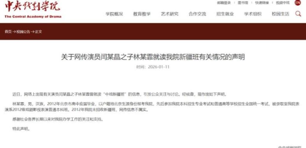 哎,这瓜真是一个接一个,让人应接不暇!谁能想到,闫学晶那句“百八十万才够花”带来的风波还没完全散去,她儿子林傲霏的入学旧事又被翻了出来。虽说中戏官方早就澄清过,林傲霏是正经2012级的学生,跟所谓的“新疆班”没关系,可架不住大家心里犯嘀咕啊。