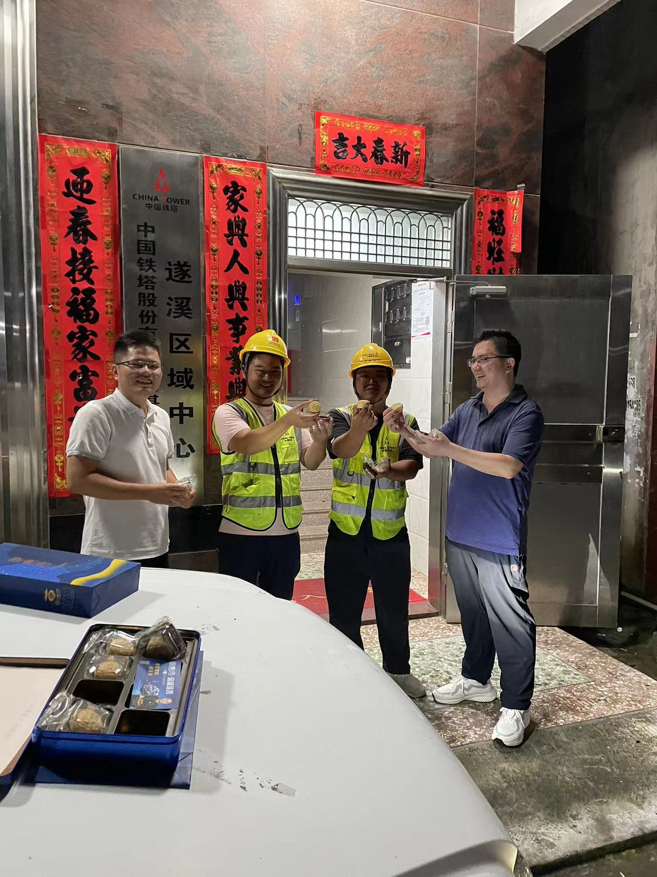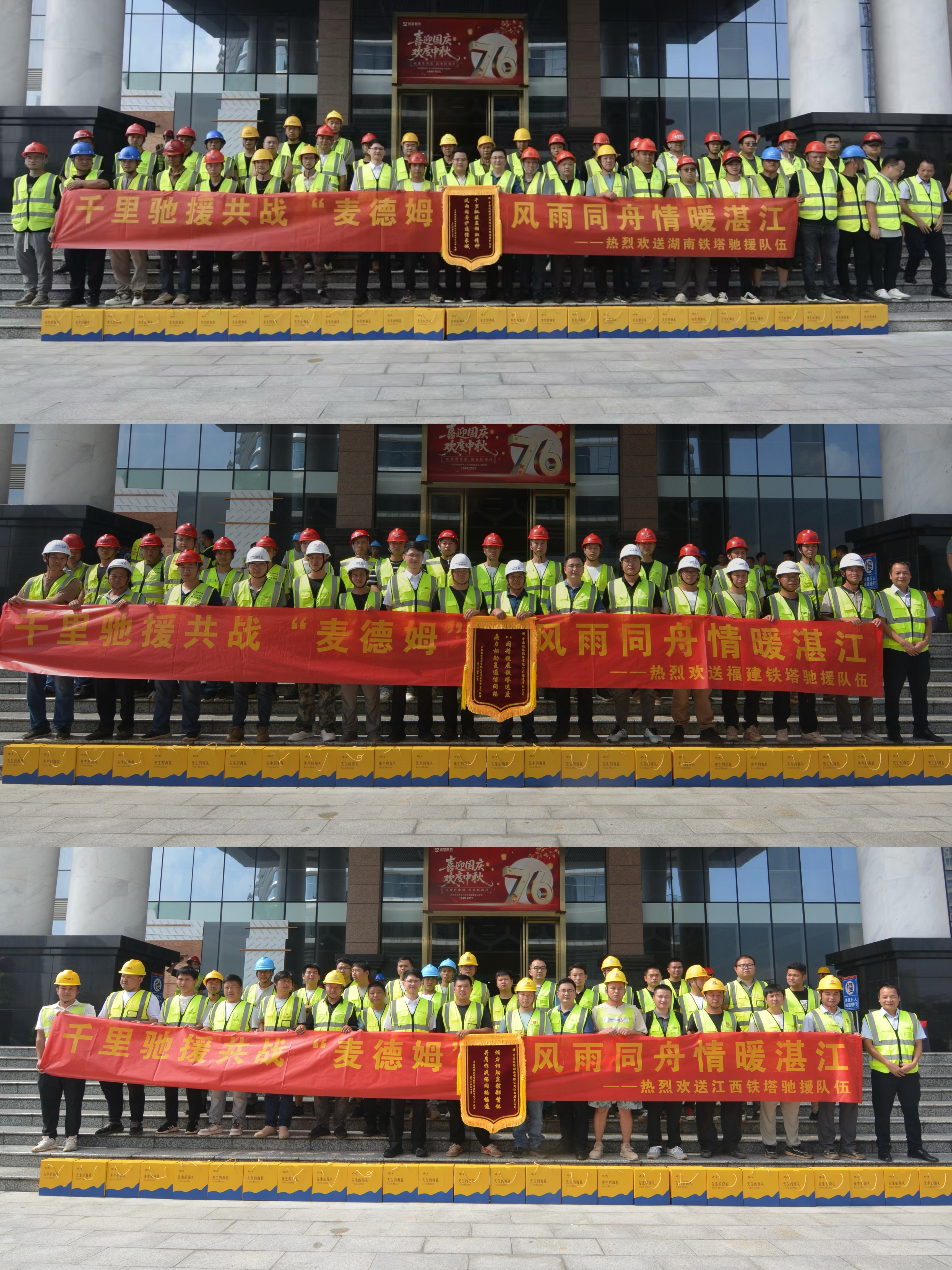 面对油料补给困境,湛江铁塔快速建立“机动补给、直送一线”保障机制,各区域充分发挥主动性,通过政府协调、租赁、搭乘应急艇等方式将油机油料精准投送至分散的抢修站,有效解决了交通中断的“加油难”问题;6日是中秋节,也是抗击台风灾后恢复工作全面展开的第一天,跨省支援的江西、湖南、福建铁塔分公司保障人员放弃与家人团圆,坚守岗位、昼夜奋战;省运维部深入湛江吴川、廉江、遂溪区域,关怀慰问,实地参与一线抢修进展……直至深夜,在湛江市遂溪区域中心,与连夜赶赴到达粤东的揭阳铁塔进行安全交底才吃上了月饼。