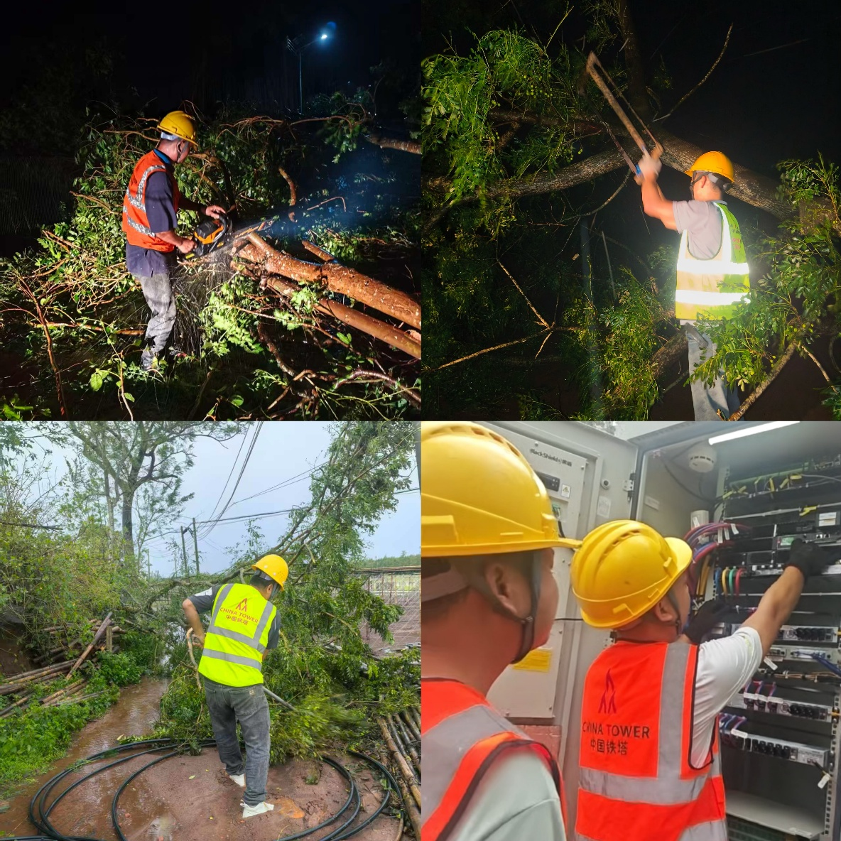 台风登陆当天,湛江铁塔总经理李迎春带领团队制定抢修清单和应急预案,集结近660多人投入到抢险复产中,连续4天应急抢险队伍均凌晨4点30分启程,在最困难的时候拿起砍刀清障开路,早上6点发电发起215站,9点267站、12点346站……当日最高发电保障达到513个站点。